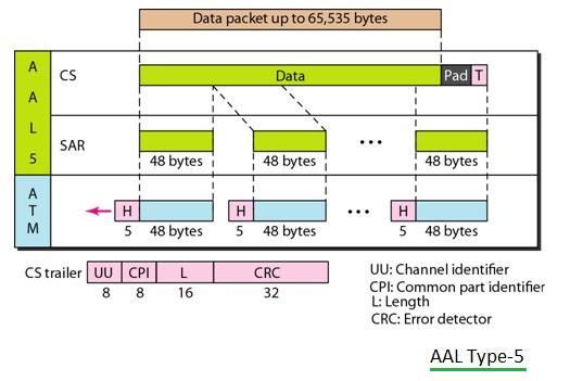 The figure above illustrates the fields within the AAL5 protocol layer.